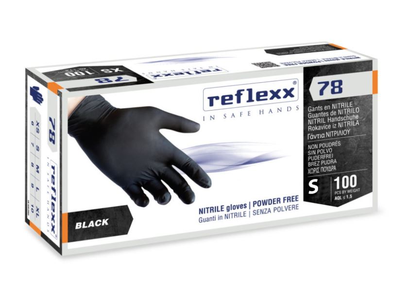 REFLEXX 78 tag.S GUANTI NERI NITRILE SENZA POLVERE MONOUSO (100pz)